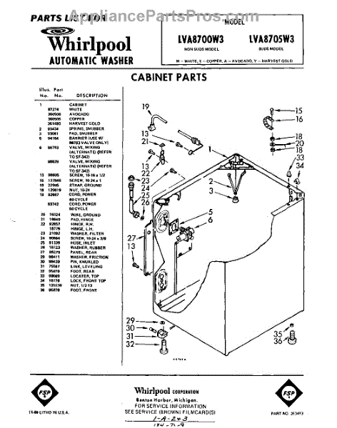 Parts for Whirlpool LVA8705W3: 01 - Cabinet Parts