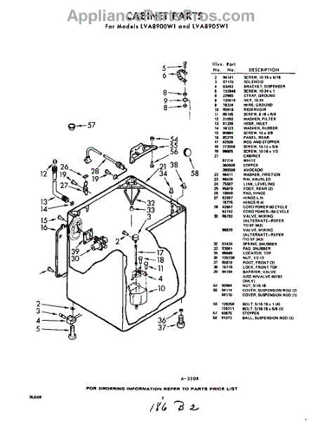 Parts for Whirlpool LVA8905W1: 02 - Cabinet Parts