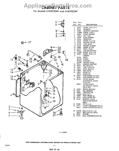 Parts for Whirlpool LVA9925W1: 02 - Cabinet Parts