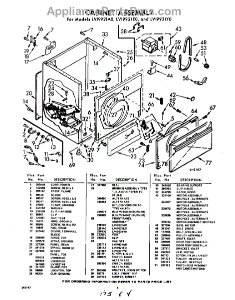 Parts for Whirlpool LVI9921A0: 04 - Cabinet Parts