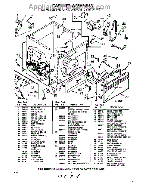 Parts for Whirlpool LVI9921E1: 04 - Cabinet Parts