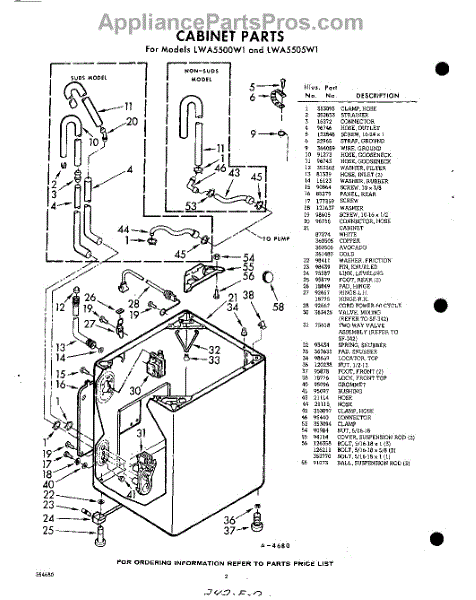 Parts for Whirlpool LWA5500W1: 02 - Cabinet Parts