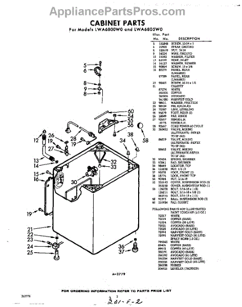 Parts for Whirlpool LWA6800W0: 02 - Cabinet Parts