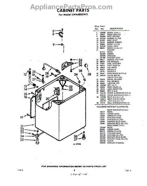 Parts for Whirlpool LWA6800W5: 02 - Cabinet Parts