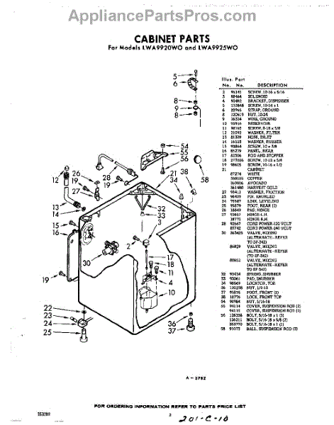 Parts for Whirlpool LWA9925W0: 02 - Cabinet Parts
