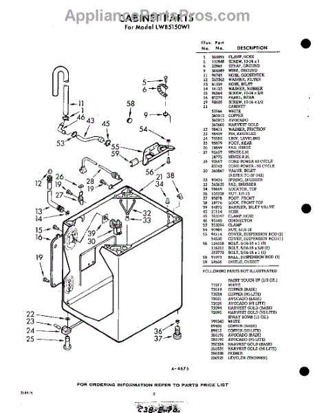 Parts for Whirlpool LWB5150W1: 02 - Cabinet Parts