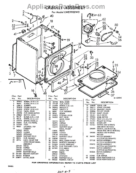 Parts for Whirlpool LWE9900W0: 04 - Cabinet Parts