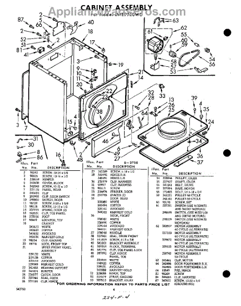 Parts for Whirlpool LWE9920W0: 04 - Cabinet Parts