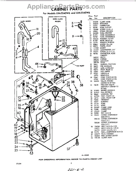 Parts for Whirlpool LXA5545W6: 02 - Cabinet Parts