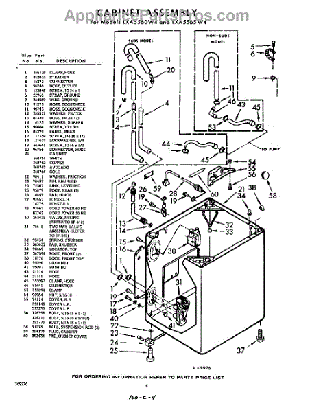 Parts for Whirlpool LXA5560W4: 04 - Cabinet Parts