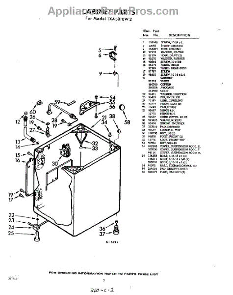 Parts for Whirlpool LXA5810W2: 02 - Cabinet Parts