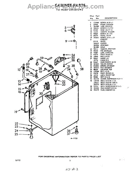 Parts for Whirlpool LXA5810W3: 02 - Cabinet Parts