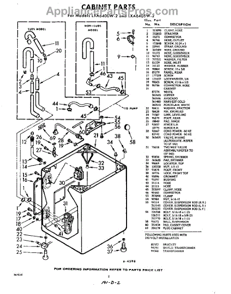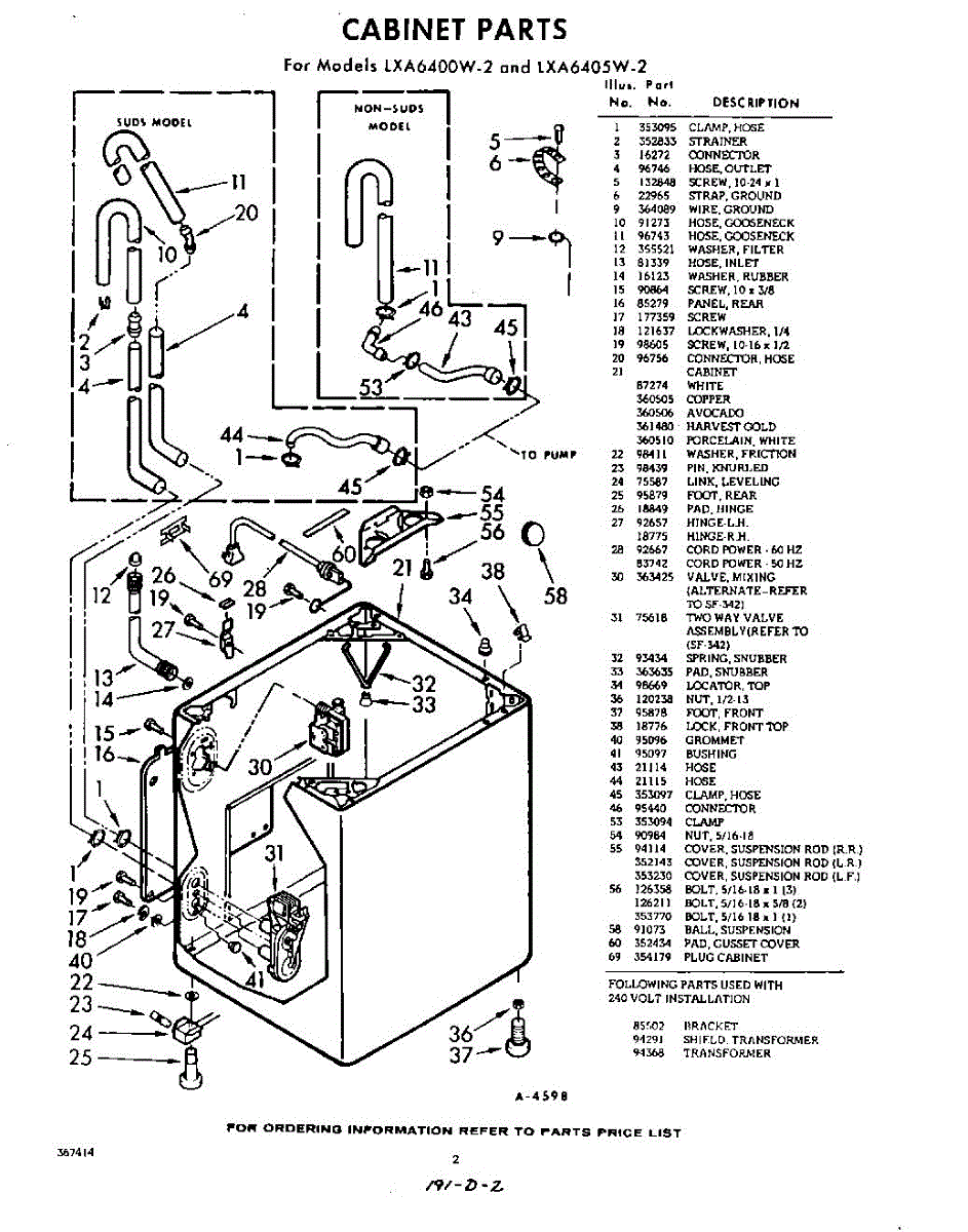 Parts for Whirlpool LXA6400W2: 02 - Cabinet Parts