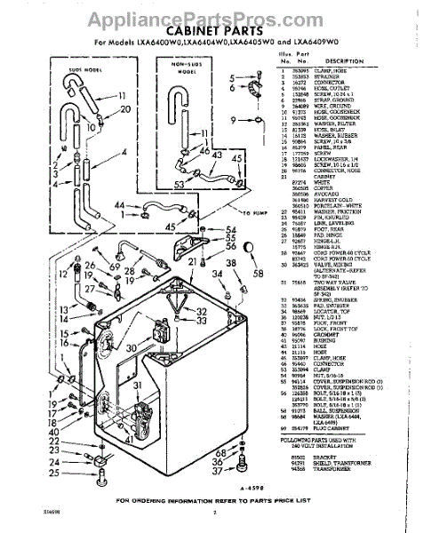 Parts for Whirlpool LXA6404W0: 02 - Cabinet Parts