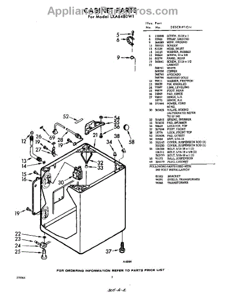 Parts for Whirlpool LXA6480W1: 02 - Cabinet Parts