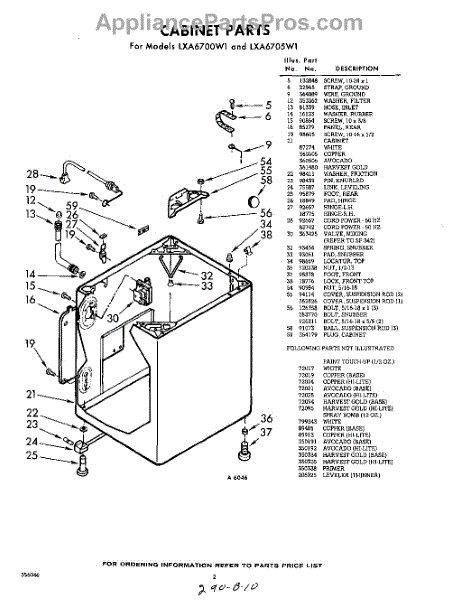 Parts for Whirlpool LXA6705W1: 02 - Cabinet Parts