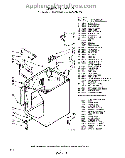 Parts for Whirlpool LXA6760W3: 02 - Cabinet Parts
