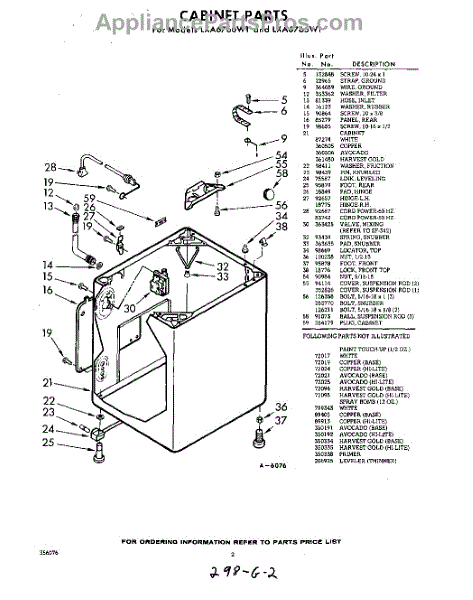 Parts for Whirlpool LXA6765W1: 02 - Cabinet Parts
