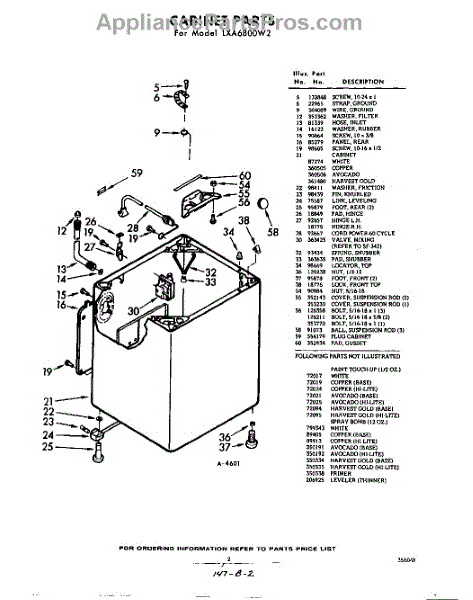Parts for Whirlpool LXA6800W2: 02 - Cabinet Parts