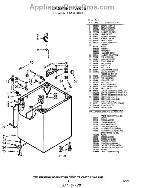 Parts for Whirlpool LXA6800W4: 02 - Cabinet Parts