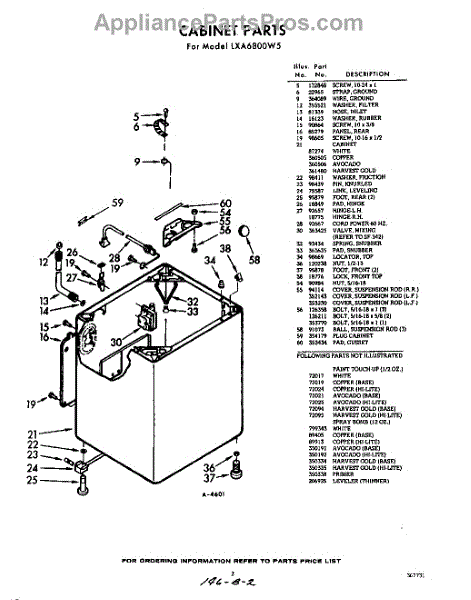 Parts for Whirlpool LXA6800W5: 02 - Cabinet Parts