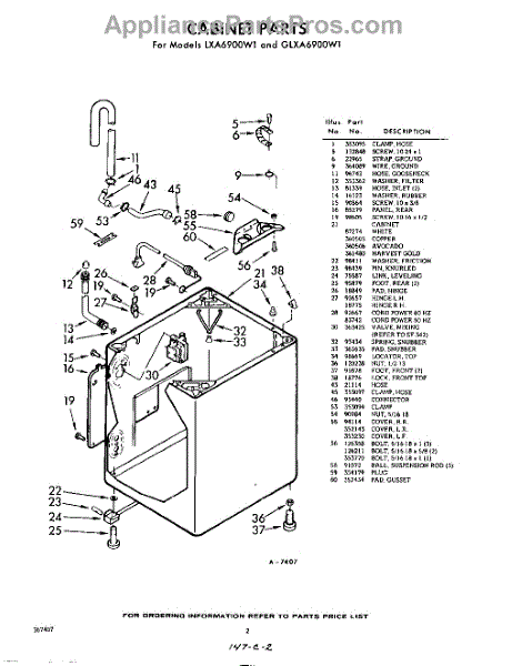 Parts for Whirlpool LXA6900W1: 02 - Cabinet Parts