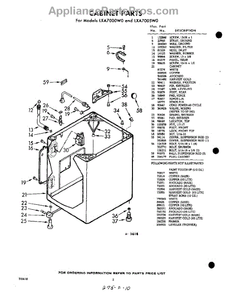 Parts for Whirlpool LXA7000W0: 02 - Cabinet Parts