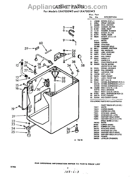 Parts for Whirlpool LXA7000W3: 02 - Cabinet Parts