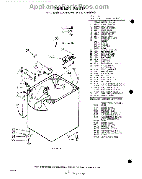 Parts for Whirlpool LXA7500W0: 02 - Cabinet Parts
