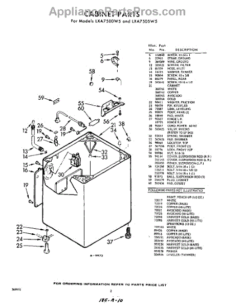 Parts for Whirlpool LXA7500W5: 02 - Cabinet Parts