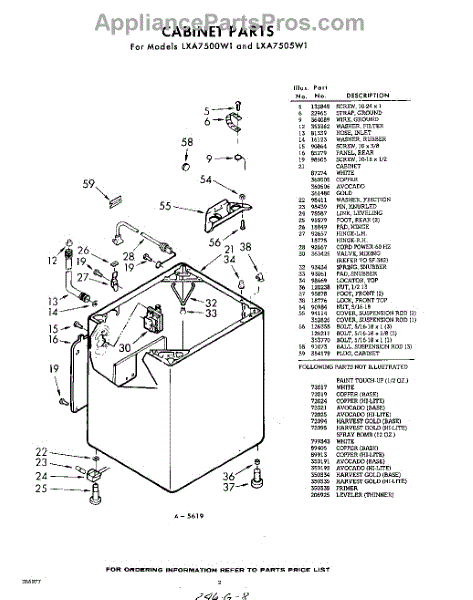 Parts for Whirlpool LXA7505W1: 02 - Cabinet Parts