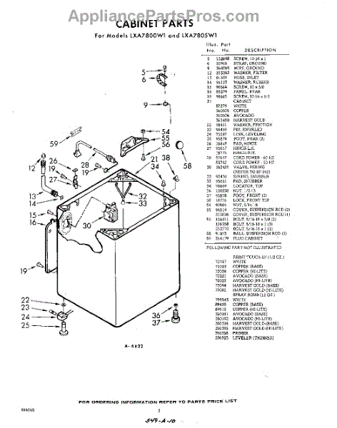 Parts for Whirlpool LXA7805W1: 02 - Cabinet Parts