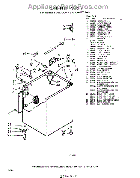 Parts for Whirlpool LXA8700W4: 02 - Cabinet Parts