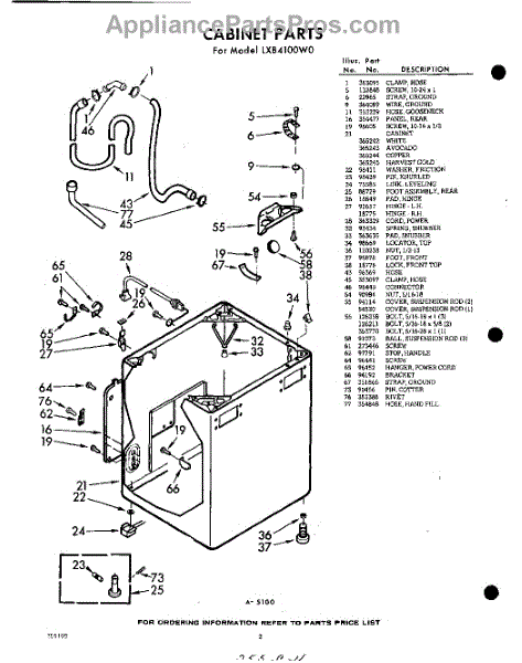Parts for Whirlpool LXB4100W0: 02 - Cabinet Parts