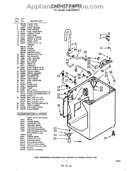 Parts for Whirlpool LXB5300W3: 05 - Cabinet Parts