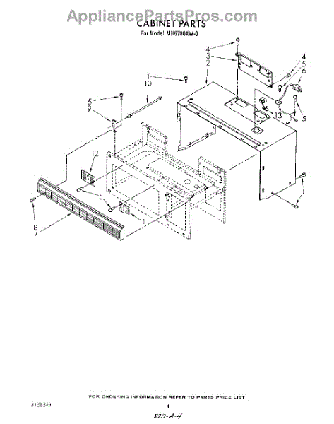 Parts for Whirlpool MH6700XW0: 04 - Cabinet Parts