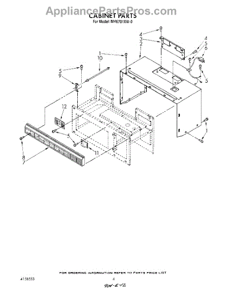 Parts for Whirlpool MH6701XW0: 04 - Cabinet Parts