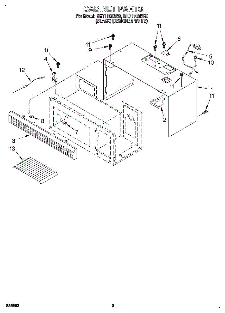 Front mounting bracket for microwave installation. Secures microwave to cabinet or wall. Replace if bent, cracked, or missing for proper support.