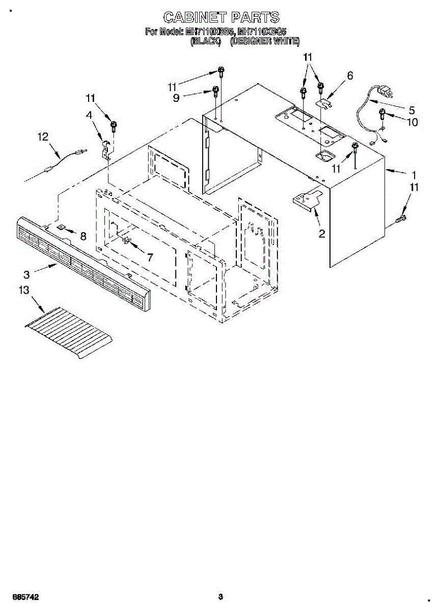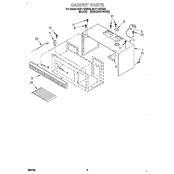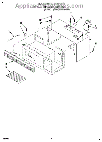 Front mounting bracket for microwave installation. Secures microwave to cabinet or wall. Replace if bent, cracked, or missing for proper support.