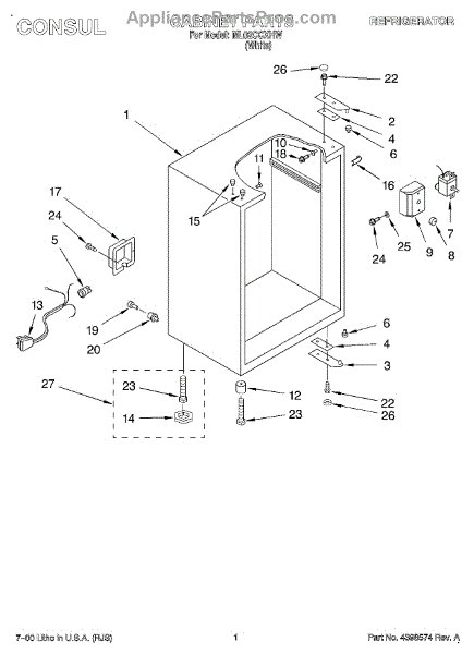 This factory screw secures appliance components to their mounting points. Replace missing, worn, or stripped hardware to restore a tight fit, proper alignment, and quieter operation across the affected assembly.