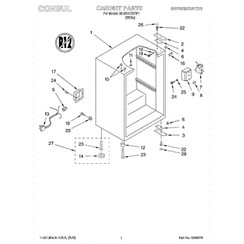This factory screw secures appliance components to their mounting points. Replace missing, worn, or stripped hardware to restore a tight fit, proper alignment, and quieter operation across the affected assembly.