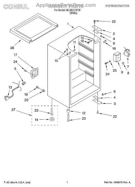 This factory screw secures appliance components to their mounting points. Replace missing, worn, or stripped hardware to restore a tight fit, proper alignment, and quieter operation across the affected assembly.