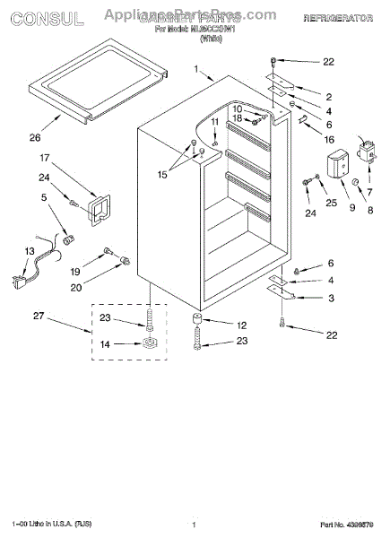 This factory screw secures appliance components to their mounting points. Replace missing, worn, or stripped hardware to restore a tight fit, proper alignment, and quieter operation across the affected assembly.