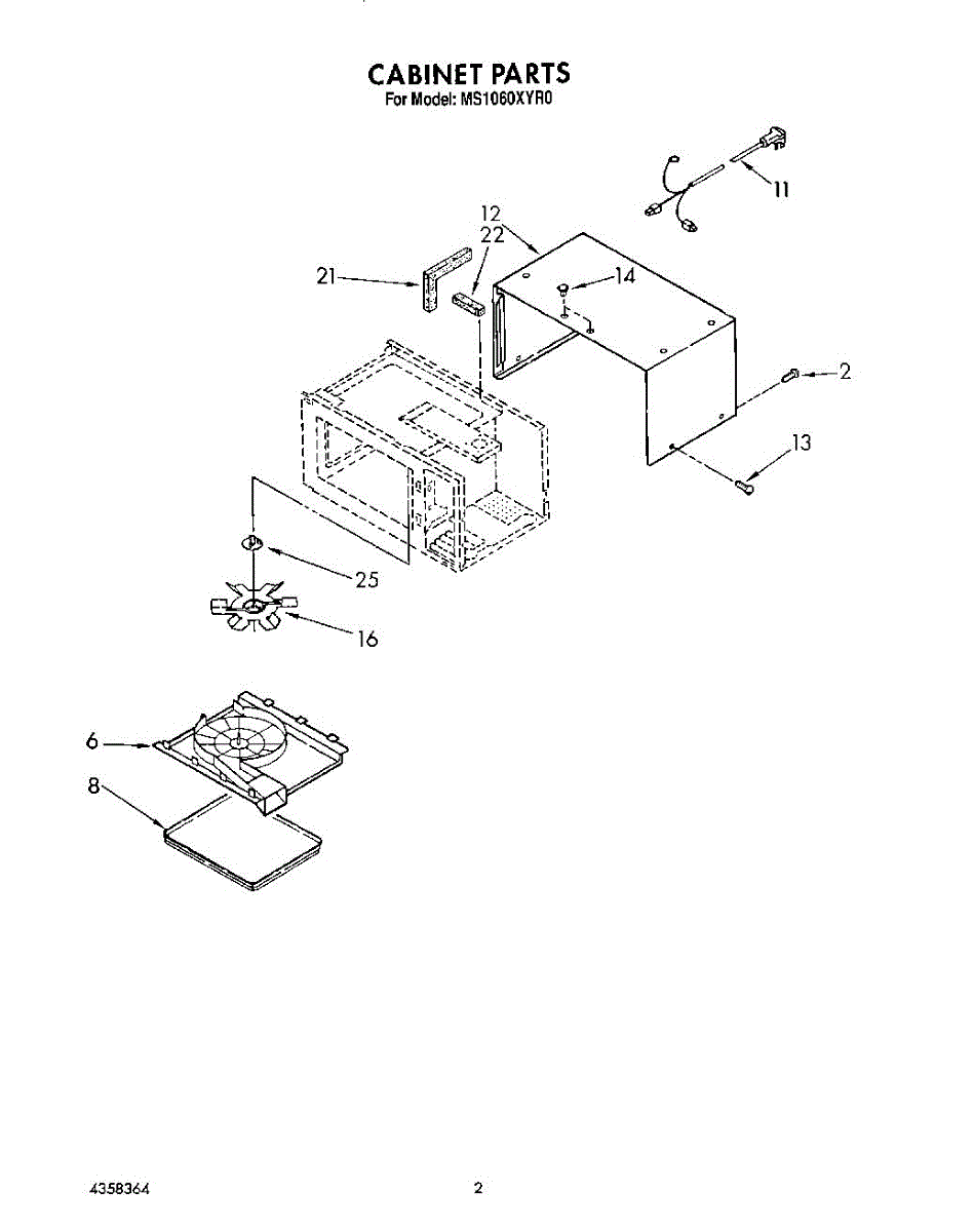 Parts for Whirlpool MS1060XYR0: 02 - Cabinet Parts