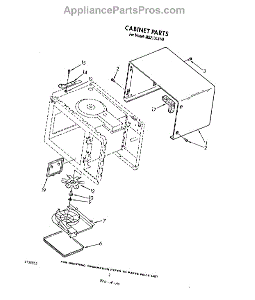 Parts for Whirlpool MS2100XW0: 02 - Cabinet Parts