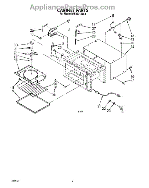 Parts for Whirlpool MW3601XW1: 02 - Cabinet Parts