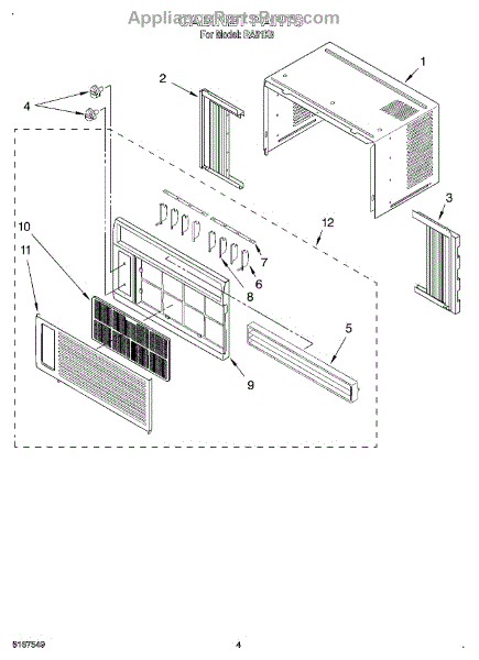 Parts for Whirlpool RA51K0: 04 - Cabinet Parts