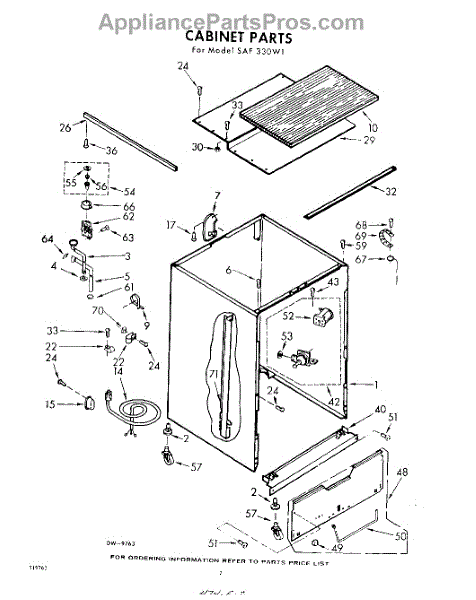 Parts for Whirlpool SAF330W1: 02 - Cabinet Parts