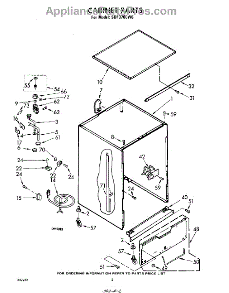 Parts for Whirlpool SDF3700W6: 02 - Cabinet Parts