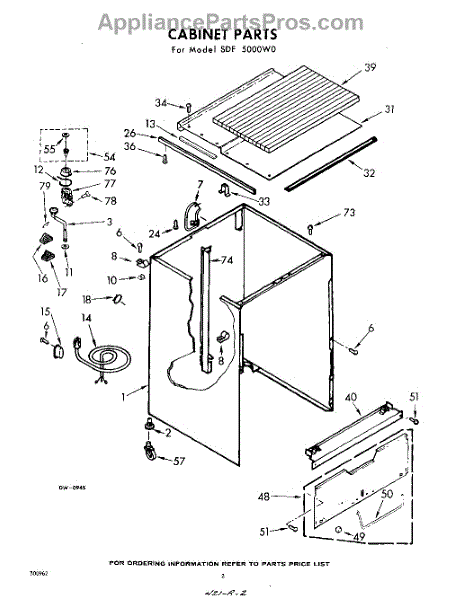 Parts for Whirlpool SDF5000W0: 02 - Cabinet Parts